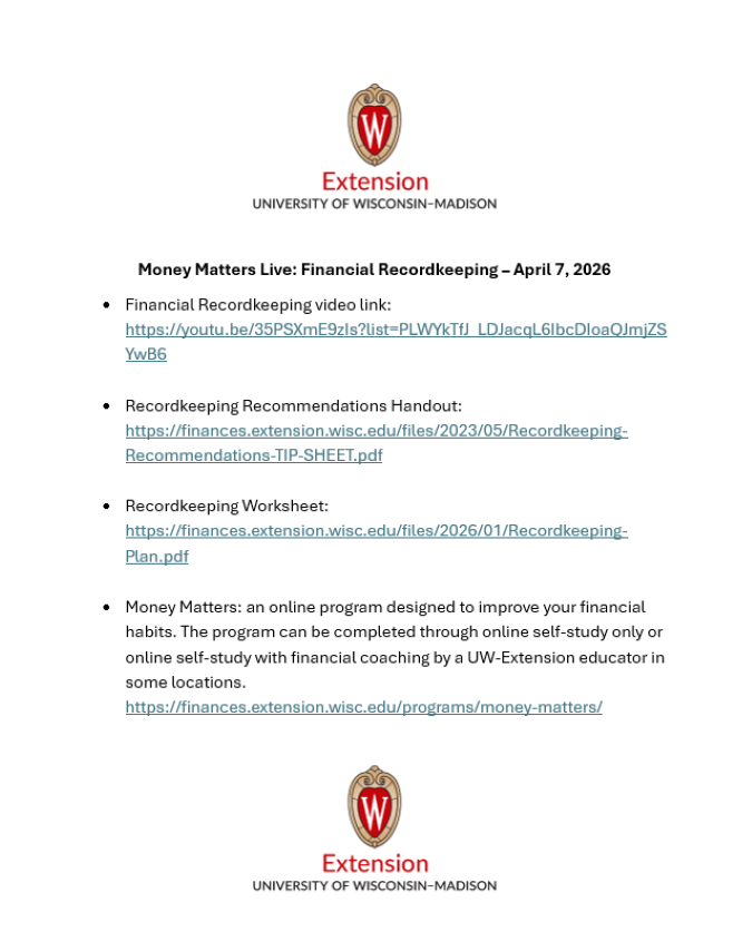 We also encourage you to complete online modules from our self-guided program, Money Matters.